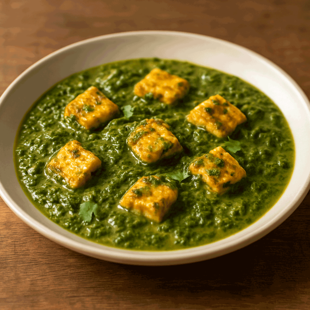 Saag paneer is a classic North Indian dish known for its rich, earthy flavor and nourishing ingredients. Saag refers to a blend of leafy greens—most commonly spinach, sometimes combined with mustard greens—slow-cooked and puréed with garlic, ginger, onions, and warming spices to create a smooth, vibrant base.