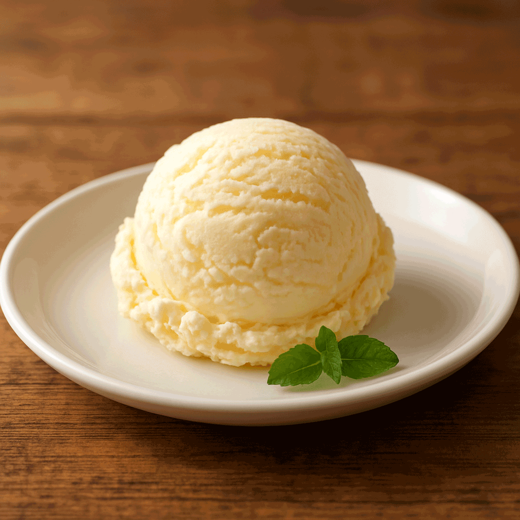 A generous scoop of traditional vanilla ice cream.