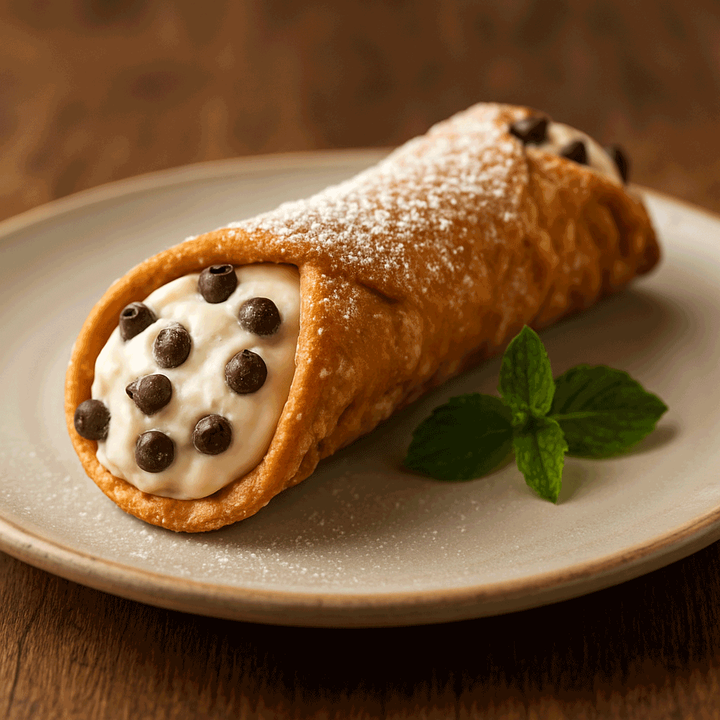 The dessert features a delicate, tube-shaped pastry shell fried until light and crunchy, then filled just before serving to preserve its texture. Classic cannoli are filled with a smooth, lightly sweetened ricotta cream, sometimes enhanced with chocolate chips, citrus, or vanilla for added depth.