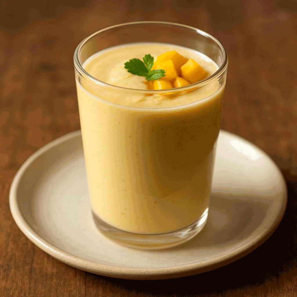Mango lassi is a classic Indian yogurt-based drink known for its smooth, creamy texture and refreshing sweetness. Made by blending ripe mangoes with yogurt and a touch of sugar, it’s lightly chilled and perfectly balanced—cooling, fruity, and soothing. Traditionally enjoyed alongside spicy dishes, mango lassi offers a refreshing contrast and a naturally comforting finish to any meal.