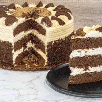 Three alternating layers of devils food cake and cookies & cream icing. A rich dessert to finish strong.